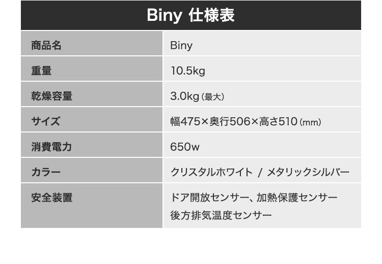 一人暮らしにおすすめの小型乾燥機「Biny」
