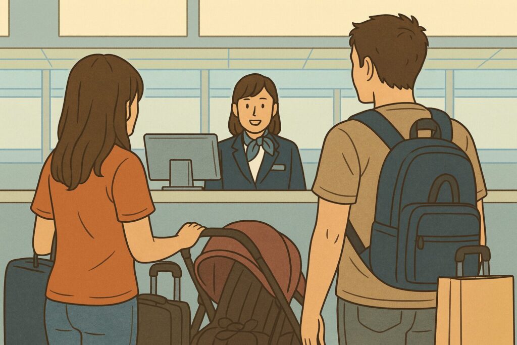 飛行機のチケットを予約するときに、ベビーカーの扱いを事前に確認しておくと当日がスムーズです。